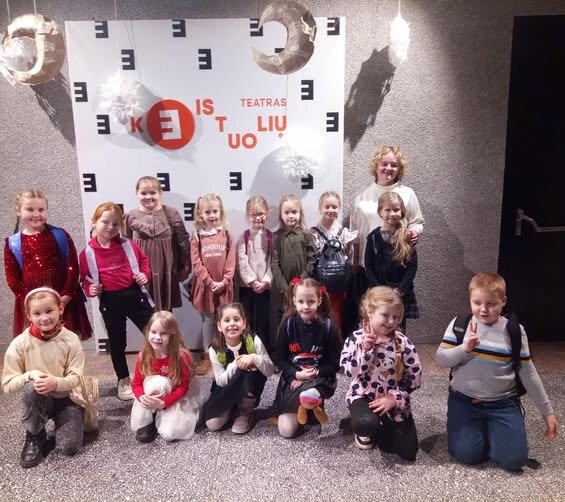 Su dar didesniu jauduliu laukėme gruodžio 18-osios. Tą dieną vykome į Keistuolių teatrą žiūrėti muzikinio spektaklio „Tip top“ D. Biseto pasakų motyvais. Po spektaklio laukė staigmena – susitikimas ir stebuklingas pabendravimas su Kalėdų seneliu.